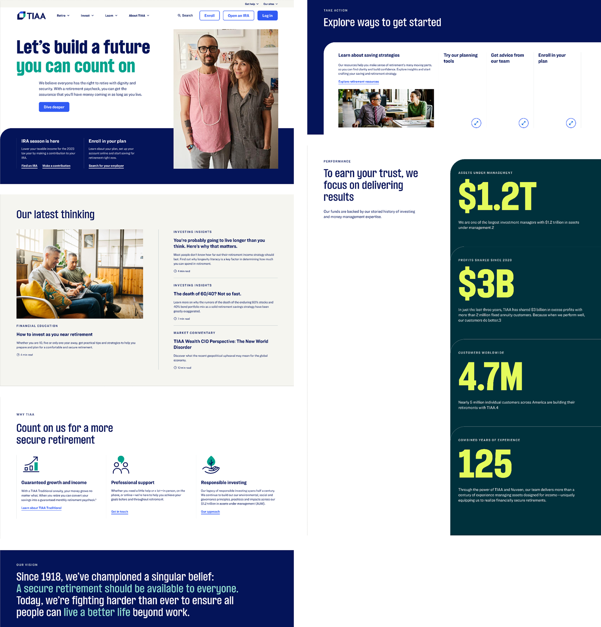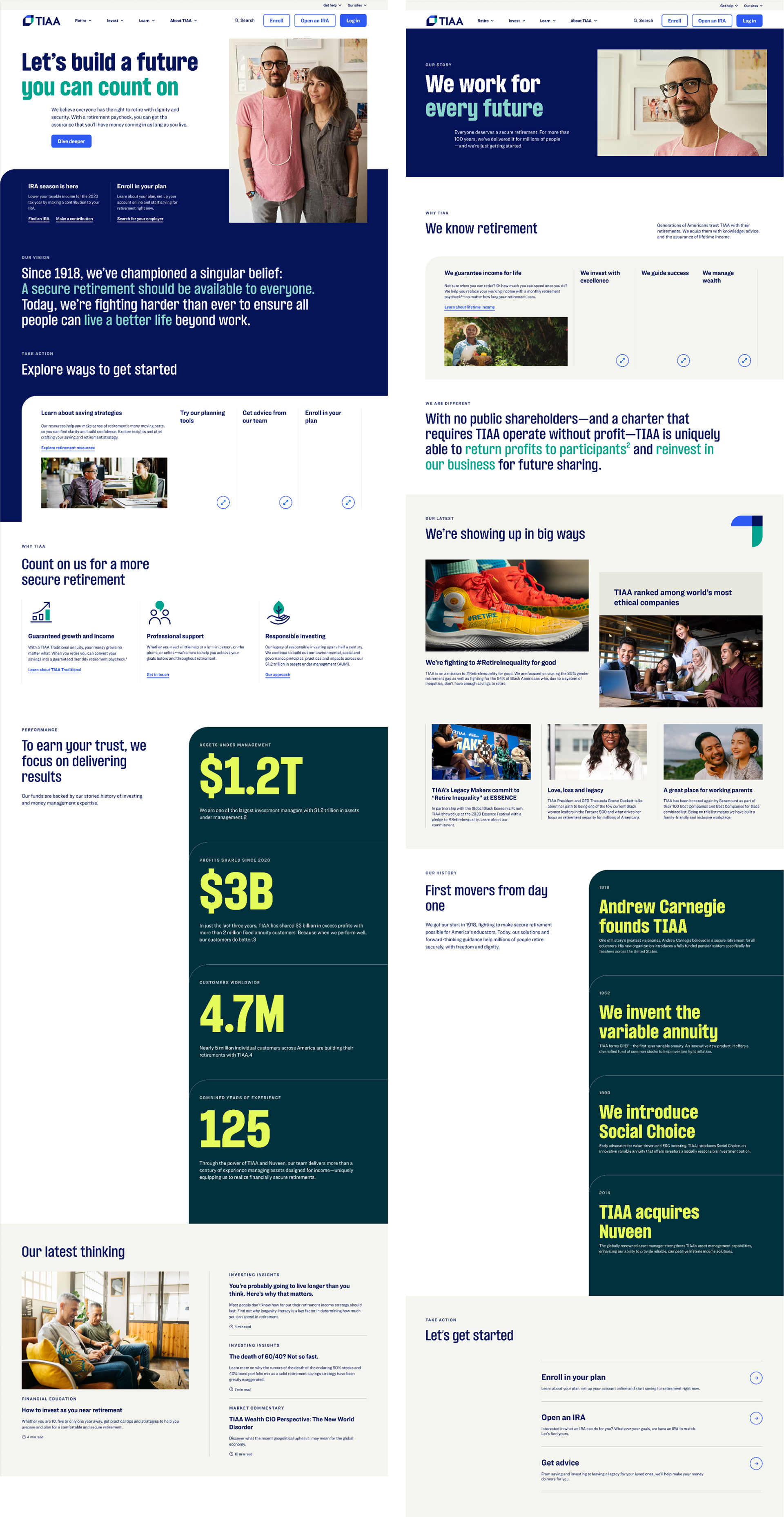 TIAA began a rebrand but hadn’t fully translated it to digital. Rather than relying on an external agency, they formed a lean internal team—myself leading visual design (with occasional motion), partnered with UX, behavioral design, systems design, and a creative director.