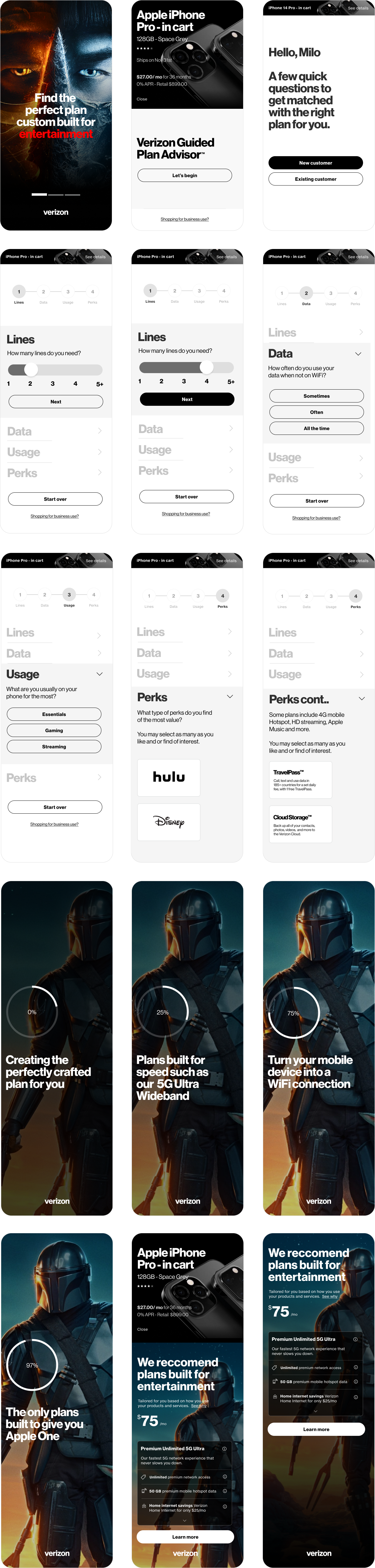Verizon was experiencing high abandonment during the plan-selection flow. Users were overwhelmed by too many options, unclear pricing structures, and a lack of personalized guidance.